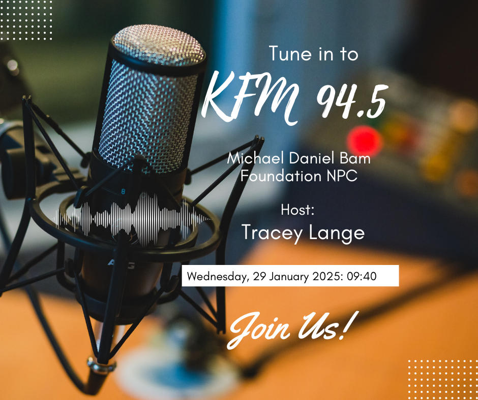 We are incredibly honoured to have been featured on KFM’s Tracey Lange Cares segment - a platform that shines a light on those working to make a difference. It was a privilege to share the heart behind the Michael Daniel Bam Foundation with Tracey and her listeners. Opportunities like this remind us of the power of community, compassion, and connection.